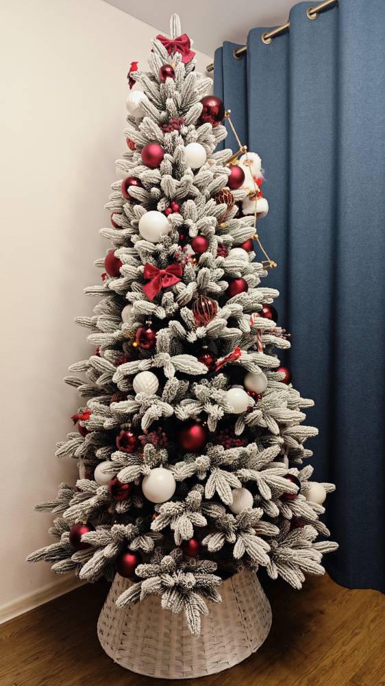 Christmas. Новогоднее дерево покрыто слоем искусственного снега, придающего ели